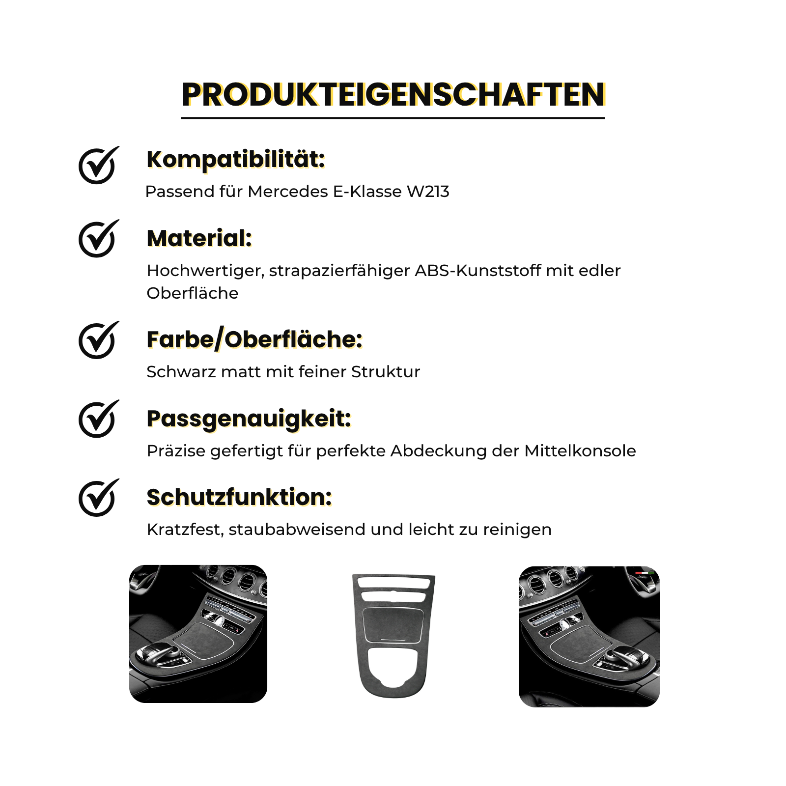Hochwertige Mittelkonsole-Abdeckung passend für Mercedes E-Klasse W213 und GLE – verleiht Ihrem Fahrzeuginnenraum ein edles, individuelles Design und schützt die Originaloberfläche vor Kratzern und Abnutzung.