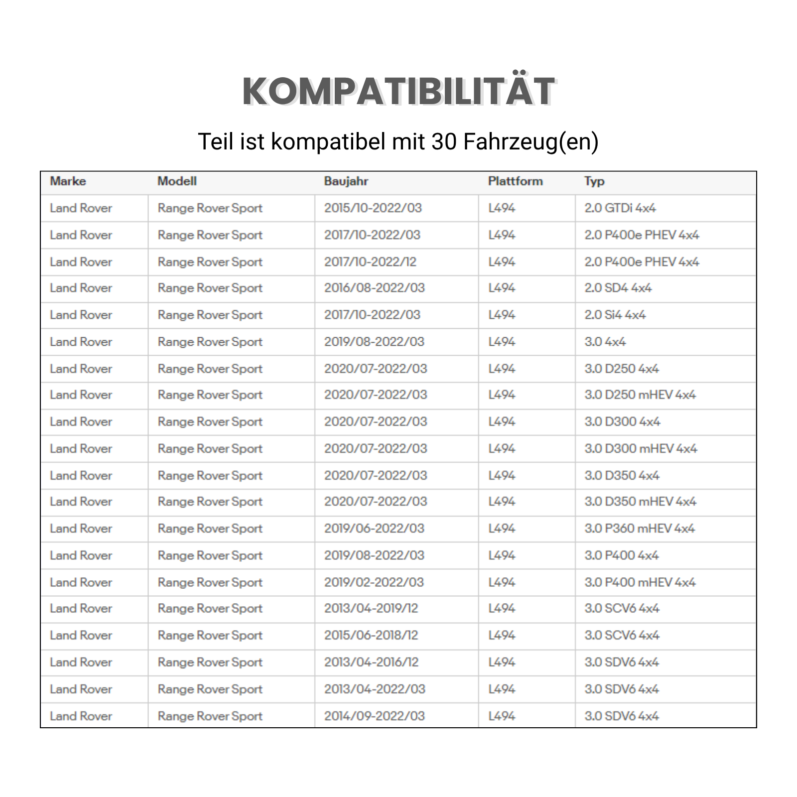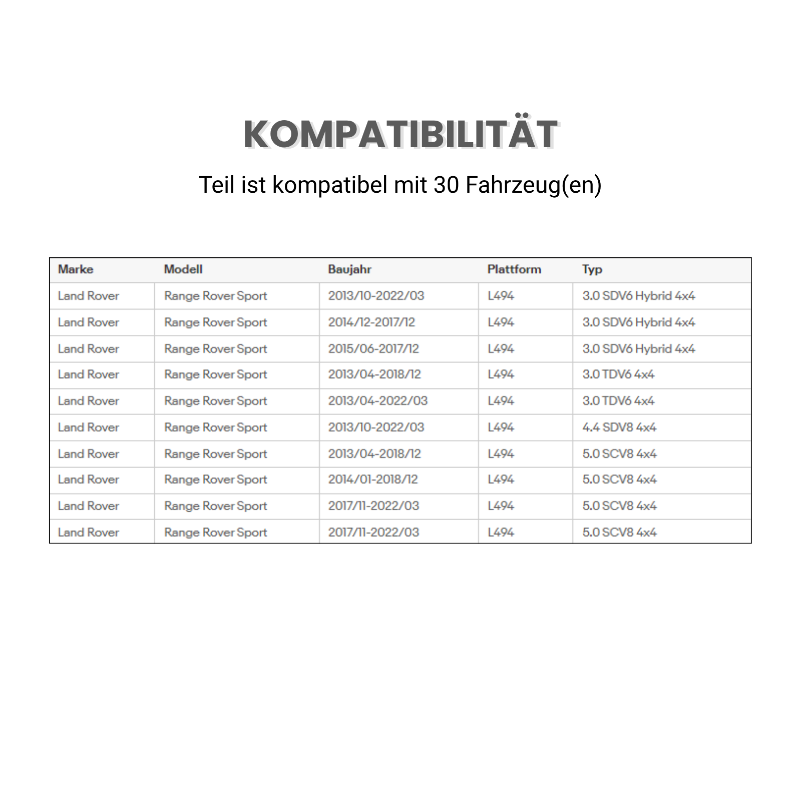 • Kompatibilität: Passend für Land Rover Range Rover Sport (Baujahre 2013–2017)